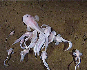 2008年10月10日,东京大学海洋研究所公布了在7700米深海生活的鱼类照片,这也是人类首次清楚地拍到在水下如此深处活动的鱼类。