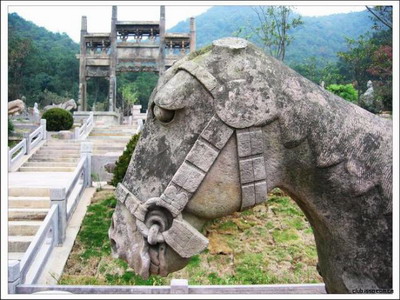 经前人考证,吴墓前的石人石马是明代物品。我不清楚我们在石刻公园看到的武将和石马到底是南宋的还是元明时代的。权且将它们放在一起,作为比较。