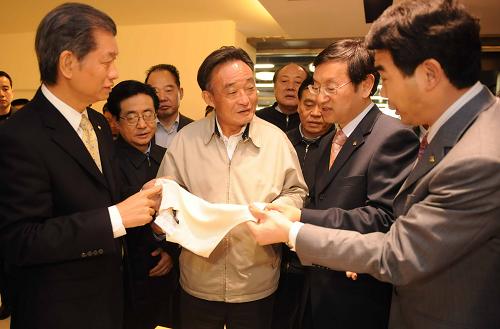 金融危机是否对企业的生产经营产生冲击,这是吴邦国非常关心的问题。订单如何?出口有没有减少?资金是否紧张……吴邦国问得非常细致。李如成自信地回答:“金融危机对我们纺织行业确实带来了较大的影响,但对雅戈尔来说不算太大。我们出口和内销各占一半,今年的订单已经全部排满,而且我们主要是做高端产品。同时,雅戈尔多元化、品牌化、国际化的发展战略让我们对未来发展充满信心。”吴邦国听后感到十分欣喜,他说:“调整产业结构,注重品牌提升,加强管理创新,雅戈尔一定能更上一个新的台阶。”