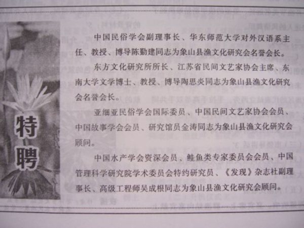 浙江省象山县渔文化研究会首届理事会名单
