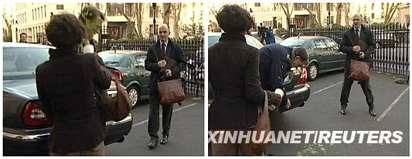 这张3月6日的拼版视频截图显示,英国商务大臣曼德尔森在伦敦遭到一名女性抗议者用绿色奶油蛋羹泼脸。新华社/路透
