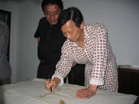 (哦,忘了写一笔,吴国华老师妻子炒的“苔条花生米”真是太好吃了,一碗下来吃完后,我就瞄向他家瓶子里装着的,但不好意思开口,正在我想之时,想不到大家都有此意,还是天池翠茶业李总脸皮“厚”一些,他帮我们讨了,结果下来就马上吃光,倒了四五遍,就把他家存在大瓶里的花生米吃了个精光。前天在人家那儿吃饭遇上他时我还说起,吴老师却风趣地说:“那是我家小菜不好,大家只能独吃花生米了。。。。。”。 |