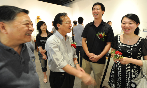 原帖由 明月出天山 于 2009-5-16 23:34 发表 二姐看弟弟作品,越看越高兴。王群二姐特从山东赶来,参加王群根雕开展