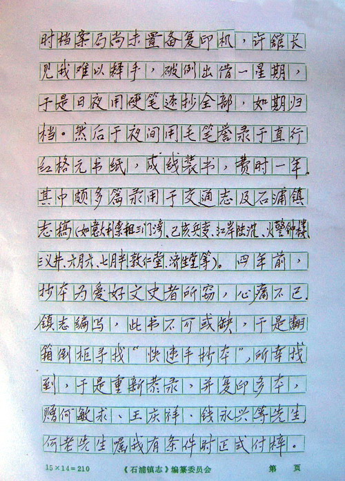 接着,我们交谈起编撰《石浦镇志》的有关问题。有幸聘任家乡编撰志书的顾问,不仅是荣誉、而更是责任。他告诉我《鹤浦镇志》也开始编撰,并高兴地说发现一位年轻人、在这方面很有潜力,史志工作后继有人。我急忙问他的姓名(叫姜剑),有机会去看看。
