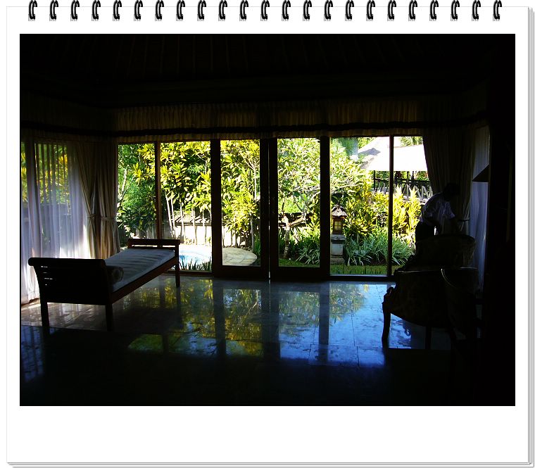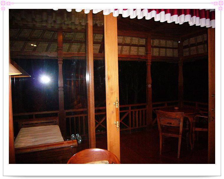 我订的那套是水景房,房子是建在水上的,房间的三面墙都是全透明的玻璃,非常浪漫。浴室是半开放式的。实际景色远比我拍的照片还要漂亮。