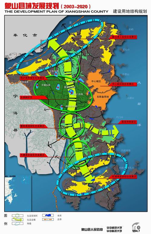 象山港区包括南港片和西港片;石浦港区的石浦片;东部沿岸区的涂茨-爵溪片和丹城-东陈片,共五个单元。用地面积共216km2。