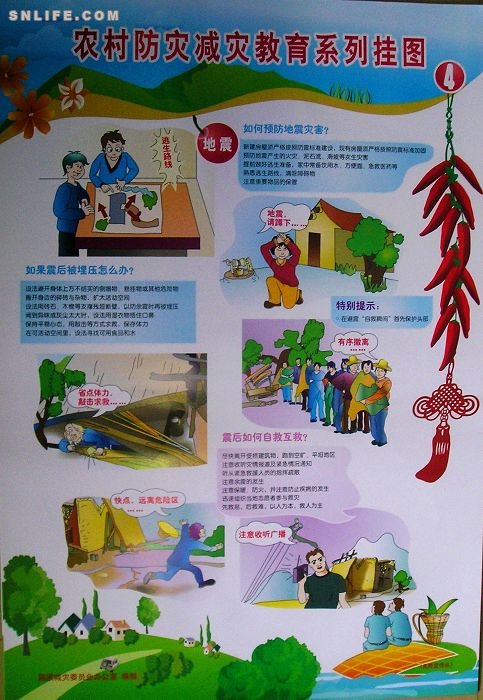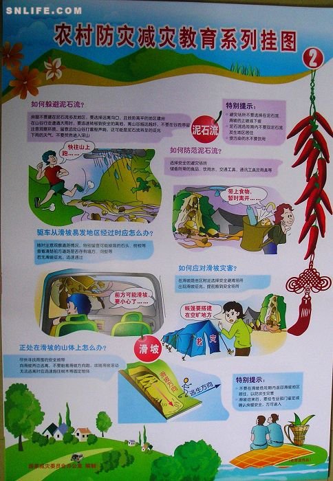 今年的5月12日是全国第一个“防灾减灾日”,国家减灾委员会办公室发行免费宣传品,向广大群众宣传防灾减灾知识,由于网上找不到原图,只好将印刷品翻拍了帖上来,图片质量会差些。