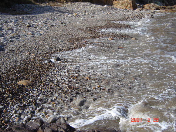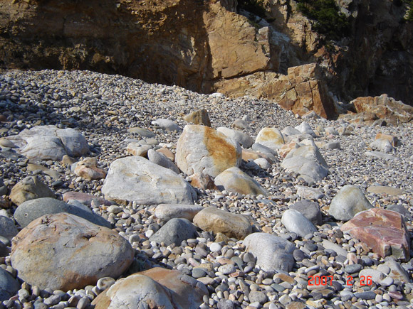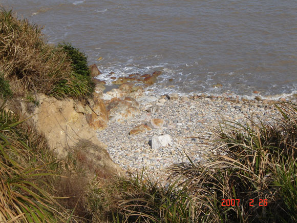 我想去过的人肯定寥寥无几,它的位置处于皇城沙滩和金鹤沙滩的中间,也就是我们所说的大沙头和小沙头之间!从昌国入口进到皇城沙滩,然后爬过东面的山进入一个小坳,下面有座庙,那堆鹅卵石海滩就在庙下面!听说那里是情人约会的绝佳位置,那天我特意去还碰到了两对,呵呵,见到我下去,人家就扫兴的走了!谈恋爱的老乡可以一试喔! : |