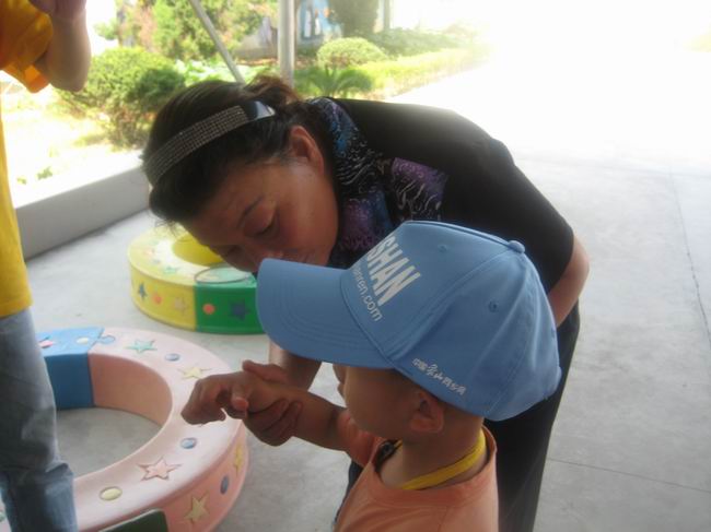 这戴帽子的小朋友是我们象山人,又聋又哑的,可怜的孩子呀