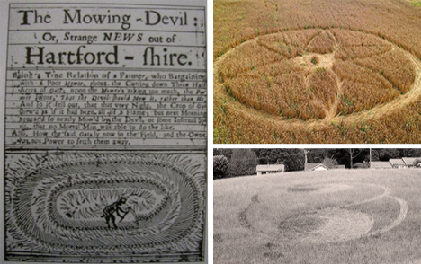 随着时间的推移,人们开始注意到天空时有亮光出现,但他们无法解释这种现象。最终,在麦田怪圈的鼓噪中,撒旦被免除了“责任”,人们转而将这种奇怪的现象归咎于外星人及外星飞船。时至今日,麦田怪圈现象便与UFO和外星人事件联系在一起。1966年,在澳大利亚昆士兰州塔利,一个农民说他看到距地面30至40英尺的高处,有飞碟从一片沼泽地掠过。当飞碟掠过水面时,水面上的芦苇呈顺时针方向倒下。