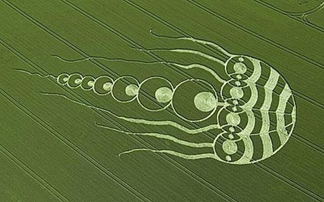 时至今日,麦田怪圈现象便与UFO和外星人事件联系在一起