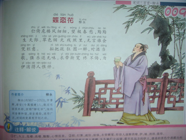 多情自古伤离别,更那堪、冷落清秋节!今宵酒醒何处?杨柳岸,晓风残月。此去经年,应是良辰好景虚设。便纵有千种风情,更与何人说?
