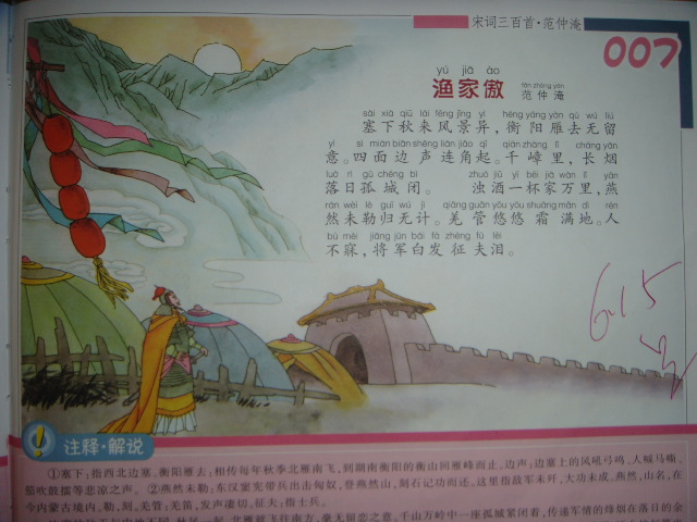 塞下秋来风景异,衡阳雁去无留意。四面边声连角起。千嶂里,长烟落日孤城闭。