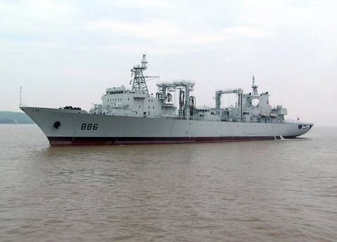 “舟山”号和“徐州”号都是国产新型导弹护卫舰。“千岛湖”号综合补给舰是由我国自行设计制造的第二代远洋综合补给舰。它航速高、适航性强,可伴随驱、护舰编队实施航行横向干、液货补给,纵向液货补给,直升机干货垂向补给,还可对伤病员实施海上早期医疗救治和后送任务。