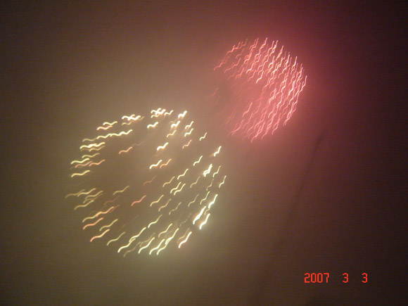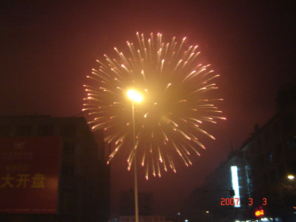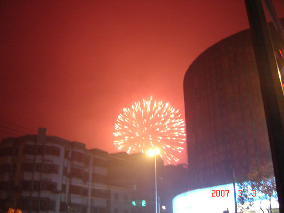 吃过晚饭就立刻上街了,金山路上人满为患,人还真不少!烟火早就开始了