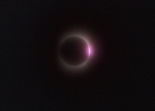 据气象预报,今天能看到日全食的几率不高。当日的气象一开始也令人担心,清晨天亮后,后云蔽日,太阳不肯露脸。随着日食时刻的临近,天公作美,阳光灿烂,让人们饱览日全食的全过程。人们或分散、或聚集,尽情观赏日全食这一奇异天象。食甚前后,出现了美丽的钻石环、贝利珠这一美妙景象。
