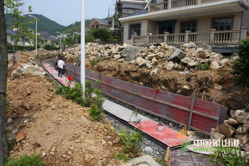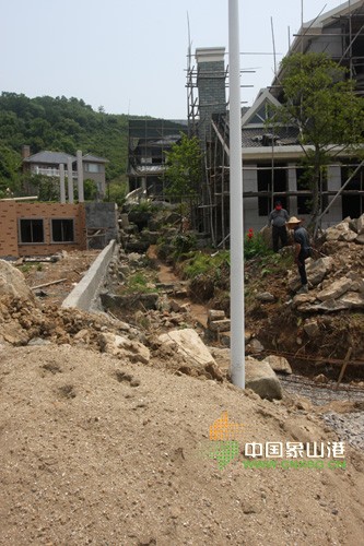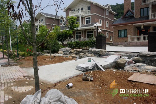 龙泽名园是我县一个较为高档的别墅小区,小区外围小桥流水、鲜花绿树,沿着河岸步行,清风徐徐吹来,沁人心肺。但一进入住宅区,眼前的景象令人惊愕:一边是雅致的绿化、养眼的楼房、齐整的设施,一边是尘土飞扬的施工工地,现场有不少工人正在忙活着。道路边堆满了砖头、沙石、木板以及各种垃圾杂物,笨重的水泥搅拌机、建筑小推车等施工用具随处可见。有些楼房几乎只剩下一个毛胚框架,房屋的砖头完全裸露在外,高贵格调尽失,实在难以想像其原本的尊容。
