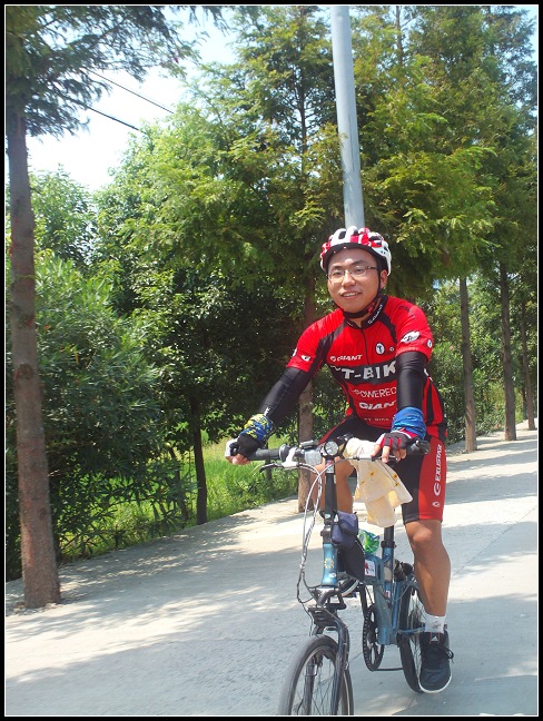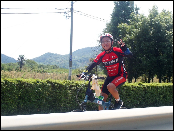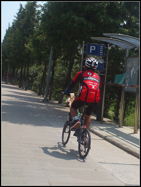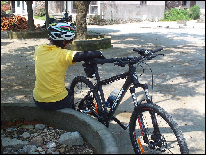 在西周加油站进行了些补给后,我、老杨、公孙老师和吉娃娃四人先到达下沈岗亭处等候周大哥。期间后方队伍来电话,灰灰的挑战者PRO爆胎了,哎,山地车爆胎,RP啊RP。也是本次出行仅有的一次爆胎。灰灰自己也郁闷死了,呵呵,不说他了。