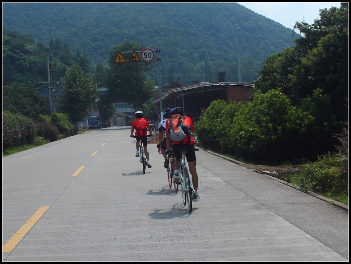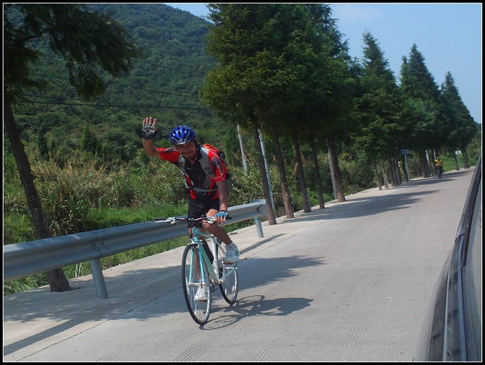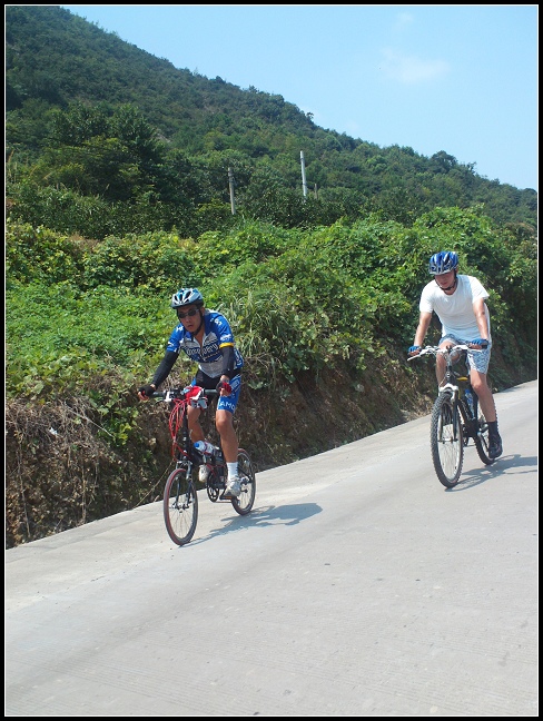 在十字路口小店再次进行了补给,休息了会后又开始上路,一上路就是那个岭,因为以前征服过也就没啥感觉了,继续押后。在坡顶遇见两条恶狗,把我吓到了,NND。一直分为两个集团推进,最后在泗洲头和茅洋之间的大樟树下休息汇合。那一路的风景真的很美。