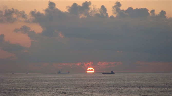 海浪声,在白天象擂起的战鼓,澎湃有力;但到了晚上,海浪声是轻柔的:枕着枕头听着海浪声:哗------哗,一浪接一浪,从远出传来,声音似乎越来越远,有一种轻缓舒适的节奏感,象母亲轻轻唱着摇篮曲,是那样温暖,是那样舒服,让人不由自主地闭上眼睛.......