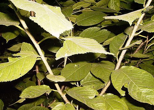 一路上,走走停停,一边观察一边拍照一边驱赶身边虎视耽耽的蚊子。再次庆幸自己是穿着长裤穿着运动鞋的,不然肯定是满身的蚊虫包了。看到了蝼蛄,擅于挖洞,喜欢栖息于泥土中,破坏植物的根系,叫的时候声音不断,若是在一个严热的午后,那叫声肯定会让人更加烦躁起来;看到了草蛉,是一位喜欢拍照的阿姨发现的。当我看到它的时候,它停在池边的草叶上,绿色细长的身体,透明的翅膀,还有那动听的叫声,就象是清脆的铃铛一样一直响着,细细听来或许那是夜间最动听的音乐。老师说,它以蚜虫为食,并有趋光性;寻着纺织娘的叫声,我们走进草丛间意外的看到一只倒挂在叶尖的大蚊子。趁着灯光明亮,我急忙将它拍下来留做纪念。它比普通蚊子大十几倍,听老师讲,如此之大的蚊子却对人无害,只吸食花蜜;走出草丛回到路上的时候,发现了一只蟋蟀,声音悦耳,且动作敏捷,还未等好好观察一番,它已消失的无影无踪。