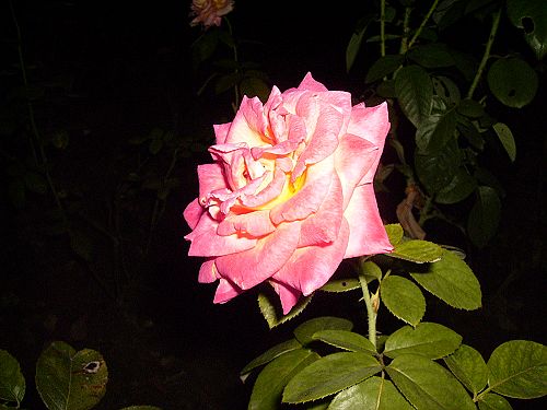 一路上,老师除了给我们介绍一些关于昆虫,小动物及蛙类的科普知识,还给我们解说了一些关于植物的知识。有种叫紫茉莉的花,也是夜来香的一种。当然,这种花记得在我老家的院子里就有种过很多,却一直不知其名,也曾问过长辈得到的答案却也不能如意,而今,终于明了,也算是没有遗憾了罢。闻其香,而得其名,果然不假;对于月季虽然白天也能看到,但夜色中的月季更显得神秘,在大家都在观察小昆虫的同时,我却忍不住拍了几张夜色中的月季,神秘中带着妩媚,原来在昼夜之间月季给我的感觉竟是如此不同。