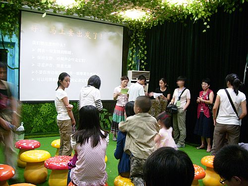 直到18:30左右,讲座《暗访夜精灵》告一段落。准备出发野外观察。因人数太多又因夜路难行又考虑到孩子们的安全问题,只得将四五十人成为两组,分别有一个老师与一个园方工作人员带队分路观察。