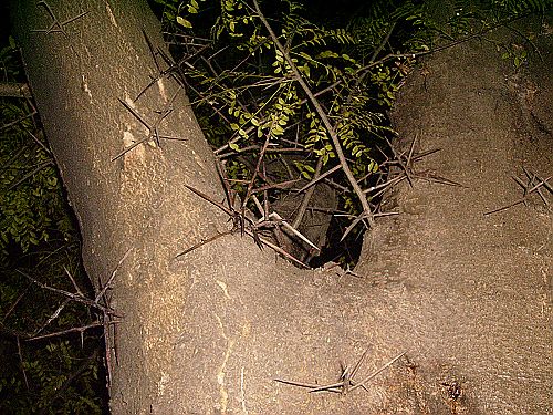 记得还有一种类似于含羞草一样的植物。含羞草一碰既合,而那种植物却是在夜间将叶子都合了起来,老师说它需要阳光的普照才能重新撑开叶子,若是我们一行二十来把手电筒齐齐的对准它照上一段时间,说不定它以为是白天到了会把叶子全部撑开。本来我们都想试试看,是否真的有如此之事,然,老师说时间太紧,说罢,我们也只能跟着老师继续前行。