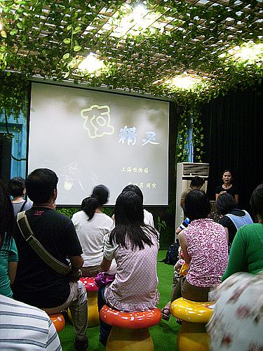去植物园门外买了瓶矿泉水的空挡,等待的时间也就那么过了。当工作人员一声令下,所有游客都陆续到场,而孩子们似乎是最兴奋的了。大人小孩加起来大概也就四五十人,等名单清点完毕之后,工作人员便带领我们去往园内的大自然放映厅,听一位来自华师大的老师讲解关于一些小昆虫小动物的科普知识。