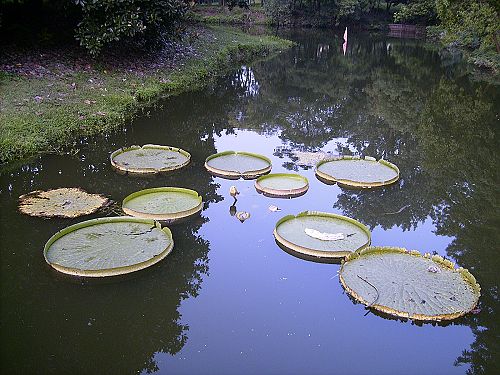 当我们在看睡莲的时候,老师一边说现在正在绽放的睡莲叫水上花王,又名王莲。其叶片平展于水面,边缘直立,很象一只巨大的盘子,大的叶片可以承重一个20-30kg的孩子。一般在7-9月份之间的夜间开放,花瓣白色,香气浓郁,次日清晨闭合,下午重新开放,呈粉红至深红色,花瓣反卷,第三天花闭合并沉入水中。一边听着一边想象着,若在白天,真想找个孩子让他上去坐上一坐,它真的可以承载一个孩子的重量?