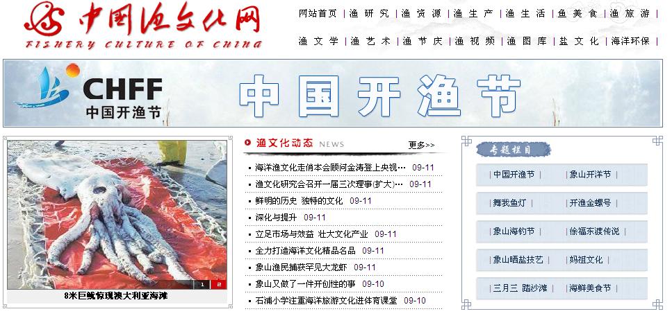 9月11日,在第十二届中国开渔节即将到来之际,中国渔文化网也正式开通啦!网址:http://www.cnywh.com/。