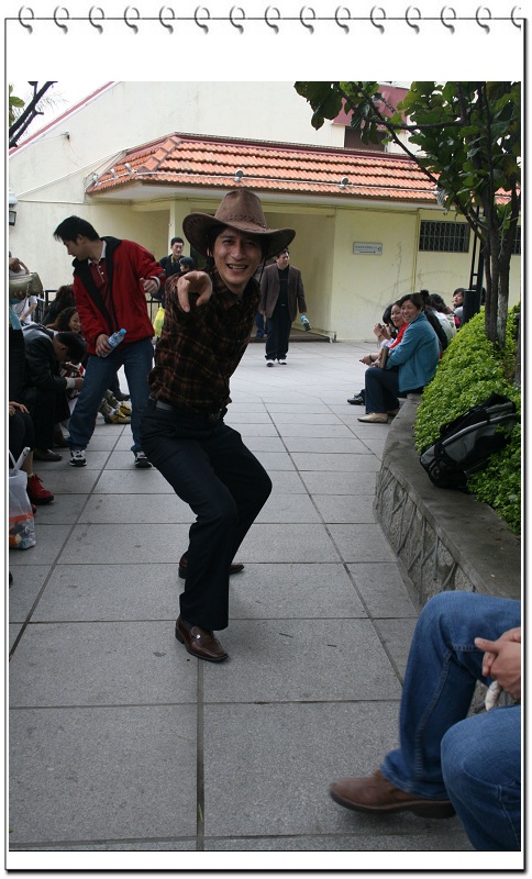 或许是新闻中心这帮人的嘻嘻哈哈一路的快乐感染了我,一开始还扮着几分斯文的我,慢慢被她(他)们活跃的情绪所影响,渐渐也忘了生分,在闲着休息时,与“小象”一起唱了起来,吸引了过往游人观驻,几位外国人还在远处偷拍着。后来在另一处景点,有一位姑娘跑过来拍了一下我的肩对我说:“哎,你就是刚才在那边唱歌的人,是吗?”我说“是啊,要拍照吗?要签名吗?”羞得她一溜小跑笑着[跑了,好失落啊