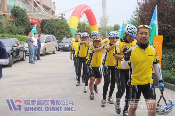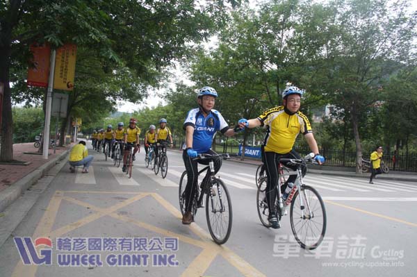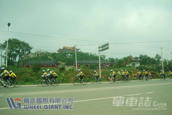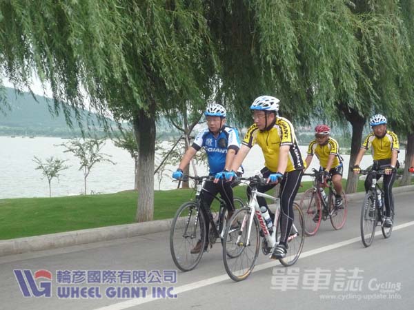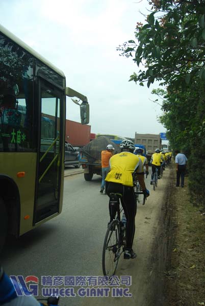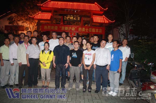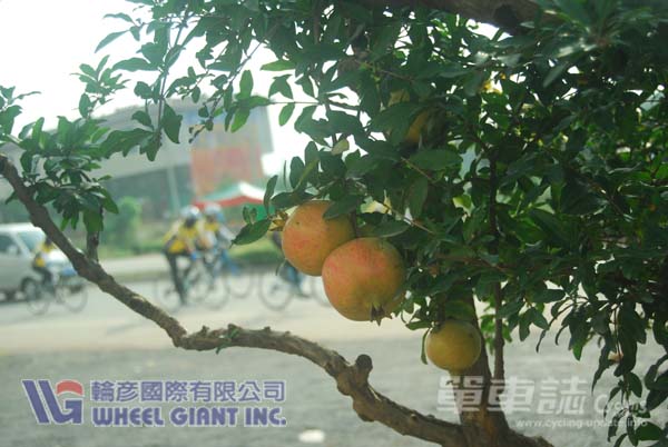 江苏,捷安特大陆总部所在地,车队阔别江苏已经七天了,已经完成了整个骑行活动的一半,进入江苏境内,犹如在自己的家乡骑行。果然,一大早来自枣庄庞大的车友来到了宾馆为车队打气加油,沿路经过的石榴地,路边挂满了果子,很多都是种在自家的门前,而马路两边种的,显然没有人照看,可见当地的民风很淳朴,不会害怕有人擅自摘果,是枣庄一大特产。枣庄车友并陪骑到鲁苏交界地界,江苏经销商早早来到鲁苏交界处举行了隆重的仪式,鞭炮声霹雳啪啦的响,锣鼓震天欢迎车队回到江苏,只看两排腰鼓手整齐敲打,欢快的步调,让大伙很轻松,也让来自台湾的蔡嘉津好奇不已,模仿起来了。同时要阔别齐鲁,感谢山东车友一路来接力陪骑,更有河南的10多个车友开车500公里从邹城陪骑到鲁苏交界,正是这些可爱的车友沿路不间断的陪骑,让车队阵容更加强大,队员们都感觉到不是单兵作战,而是集体作战。进入江苏界没有多久,车队碰到塞车,也是“京骑沪动”第一次出现塞车,不少队员推车通过,原来是公路正在维修中,并在通行咽喉处两辆汽车碰撞在一起了。
