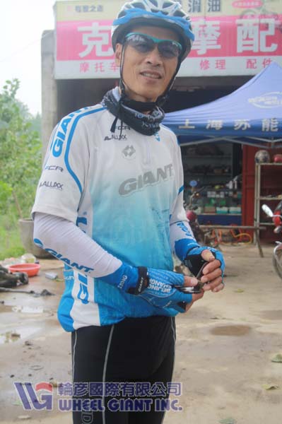 昨天晚上看新闻,就知道今天要下雨,早上灰朦朦的,轻风凉快,很舒服。骑行大约15公里时,天空飘起了毛毛细雨,正好前方车辆已经自18公里处找到休息点,大伙只好加快速度,穿上雨衣继续前进。