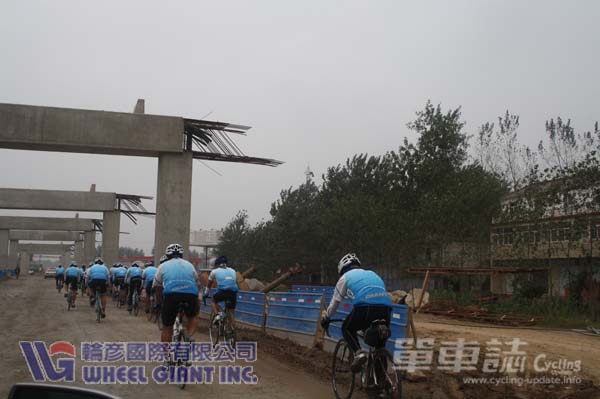 中午,笔者吃完饭,休息了一个小时还感觉浓浓的睡意,看到很多睡眼惺忪的队员慢条斯理的准备着。天空还是灰朦朦的样子,当车队出发的时候,大伙的劲也上来了,有条不紊的前行,不时跨过大运河,体会到京杭大运河在历史上发挥的作用,无论从政治、经济、军事来看,具有中央直接快速到达江南地带的交通枢纽作用。车队很快就来到泗阳与淮安交界处,我们受到淮安车友的接送陪骑,并享受到交警带路的待遇,这也是这次“京骑沪动”的第一次,为我们提供了安全保证,很快进入了淮安,到达宾馆。下午总共骑行大约40公里,一路来,道路坑坑洼洼,特别临近市区,道路上正在建高架桥,都是泥路,有的坑很深,正好有货车上的货倾倒在路边,车队也是艰难的前进。