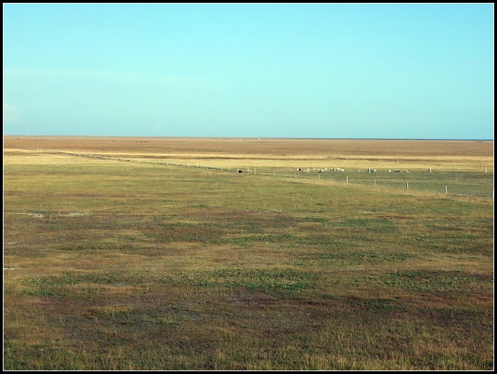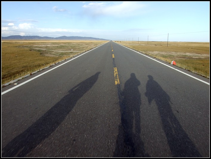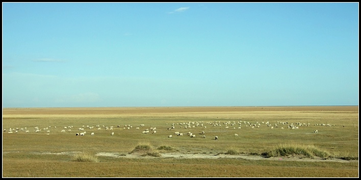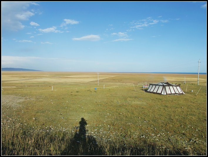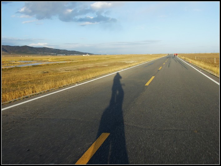 因为路况好,且下午的海拔是整体下降,所以下午的行程还是较为轻松的,梅姐虽感冒着,但一路坚持的骑行,一点都没有落下,病情一路都还稳定。在离鸟岛宾馆10来公里初,我们又遇见了那对自驾来的北京小夫妻,大家对再次遇见都显得较兴奋,都大幅度的挥手打招呼,那男的因幅度过大,车子差那么一点点就驶进草原去了,大家都被惊吓到了,还好他反应快,有惊无险。送走这对小夫妇后,我们遇见了路旁草原上骑马回程的牧民,后来这位牧民建议我们自行车和他的马飚一段,哈哈,我们一认真,速度都上了30+,把那牧民远远抛在了后面(路边那块草地路况不好,马儿自己不敢跑快)。