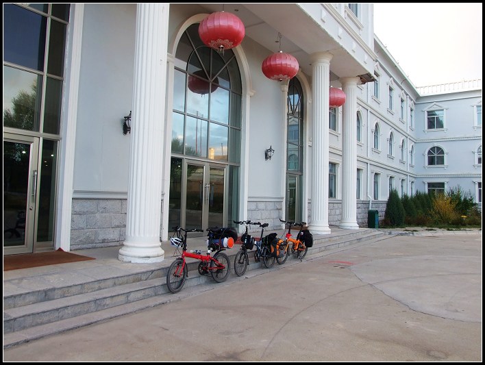 等我们到达鸟岛宾馆也已经近7点了,还好太阳还没西落。那对北京小夫妻的车已经停在了鸟岛宾馆里了,我们的交际花娃娃进去调查了房源和房价,调查后,鸟岛宾馆为国营宾馆,房价比较好,但是价格老高,现在是旅游淡季,鸟岛已经没鸟了,好说歹说,最后优惠后标间加一床也要280元,还是远远大于我们的预算,就此作罢,出去再找找其他的旅店了。