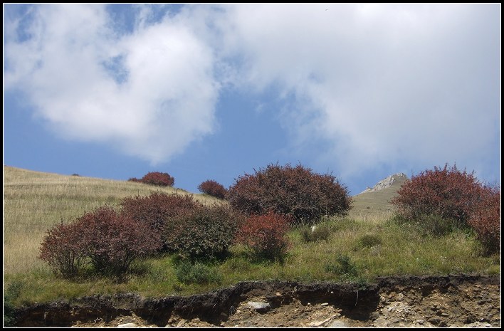 路上的高原风光,现在已经看不见一棵树了,都是低矮的灌木和一些高山草甸。