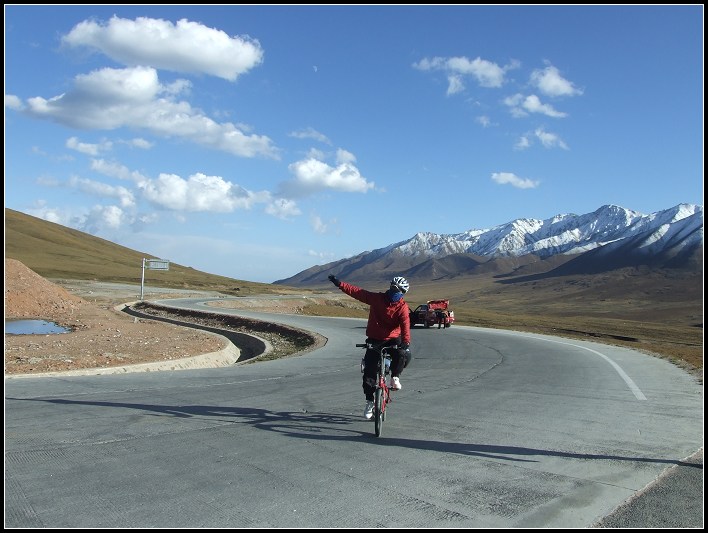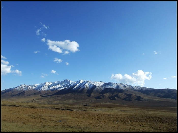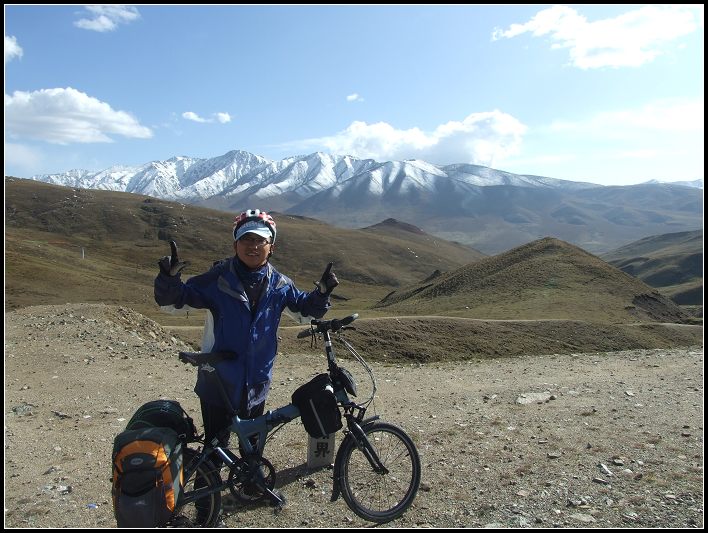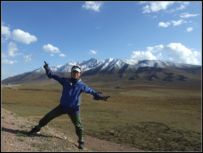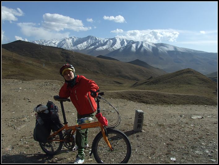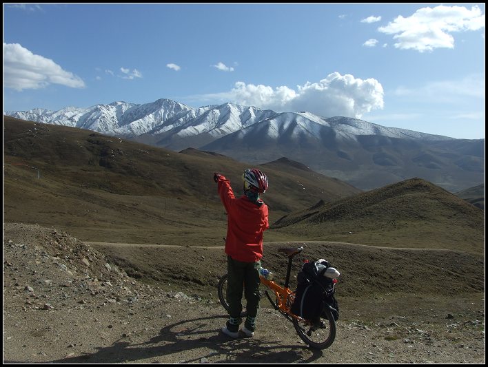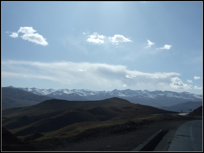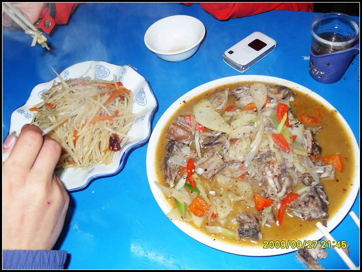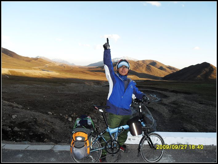 休整好出发已经是17:30分了,留给我们太阳的时间已经很少很少了,前面的路还有多少谁也不能确定。这一段路向西延伸,随着草丘的起伏而起伏,海拨一直在3800左右徘徊,并没有出现我们想象中的下坡。三个人,只有梅姐体能还充沛,我跟娃娃应该有点高反,容易疲劳。体能消耗很大很大,现在是见到上坡就只能推,后来是连推都累。那波浪状的道路把我跟娃娃可折腾死了,梅姐骑一段等我们一段,这一段是无人区,手机没信号,路上没人有,看见个一辆车都很难得的。西下的太阳在眼前慢慢的下落,月亮到已经爬上了头顶,这样日月同辉的日子一直伴随的我们后面日子的骑行。这里一段其实景色非常漂亮,以雪山和高山草甸,这里没有羊也没有牛,看来看去就我们三个,还真怕天黑了,有狼来偷袭呢。再经历了无数个上坡和下坡后,终于在太阳消失的那刹那我们迎来了长距离的联系下坡,说明我们走出了雪山,走出了高山草甸,开始向高山草原挺进。此时气温已经在0度上下了,下坡车速快,风也就急了,我们穿上一切可以穿的东西进行保暖,以最高时速56码的速度在空旷的道路上溜达溜达,行军速度明显提高了。我们三个人只有两盏灯,大家相互借光前进,好在路况好,要不就更艰难了。下了一半遇见了放牦牛的大叔,打听了今晚目的地日月乡的方向和距离,被告知还有20公里的路,此时是19:40分,天完全的黑了。后面三个人抹黑查地图的走,生怕走错了路,中途还有远处村庄的藏狗吓唬我们,此时我心里对这路也没底,走一步是一步了。直到上了西倒高速后(青海的高速是可以上自行车和行人的,西倒高速是西宁到倒淌河的高速),心里才踏实了点。但找日月乡又犯错误了,多走了8,9公里,等到了日月乡我们已经是晚上9点了,直接住在了一家藏民家,可能太累了,沟通出了问题,以至于第二天早上有点小纠纷。我们是听见住一晚三个人30块,藏民说是30元一人,这个差的大了,后来就折中20元一人算了(在日月乡,旅馆一般也都10元一人)。到是找的那家饭店老板蛮实在,告诉我们住房信息我们才有后面的砍价的依据,在饭店边吃边听他在沿海地区打工的艰辛,这个老板才19岁,感叹下……