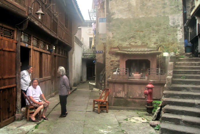 在福建街上街下街之间、“踏步道格”旁边有一座“土地堂”;其左侧远处可见“号房”的东门,门的右侧就是我家地楼的门。