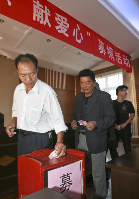 今天上午,泗洲头镇妇联获悉了朱吉祥患病的情况后,随即发出了《献爱心倡议书》,迅速发动社会各界人士为朱吉祥“送温暖,献爱心”募捐活动。全体镇机关干部来了、全镇各村党支部书记来了、镇辖各单位的负责人来了……捐款现场一个不小的会议室被大家挤得满满当当,一笔笔善款投进了募捐箱。一位年轻的镇干部感慨地说:“我们不能眼看着一个年仅44岁的生命因为贫病而离去,不能眼看着一个年幼的小孩从小就失去父亲。尽管被个人所捐的钱不多,但每一分钱都是一片心意和爱心。但愿积少成多能换回他健康的生命和阳光般的笑容。”朱吉祥所在村党支部书记胡世考也参与了现场捐款活动,看到那么多好心人的行动,他代表全村向所有奉献爱心的人们表示感谢。他说:“我们横埕村村集体经济比较薄弱,并且负了好多债务,无力更多地给予困难家庭的帮助和扶持。朱吉祥的家庭一直很贫穷,而今又有不幸的遭遇。如果没有社会和政府的关爱,不幸的家庭将更加不幸。今后,村里将一如既往地关心朱吉祥的病情,但愿他能早日得到治疗走向康复。”当天的捐款共募捐到个人捐款10600元,该镇政府还以集体名义捐了善款10000元。这20600元不日将打入朱吉祥的帐号中。