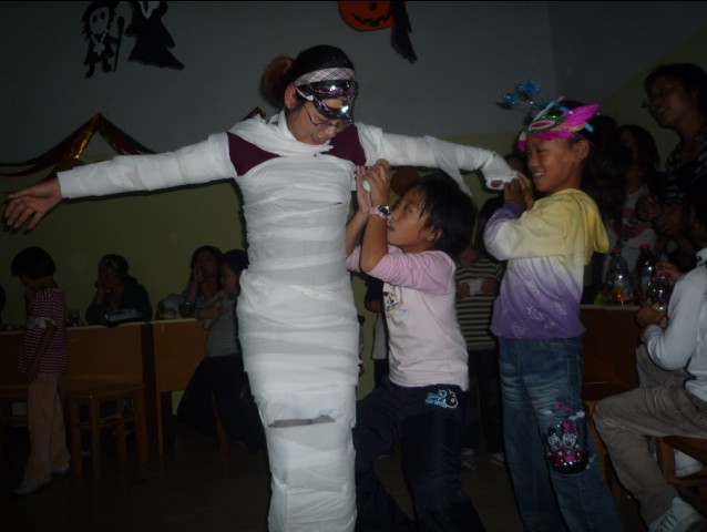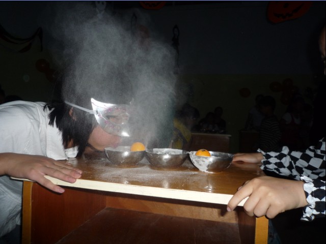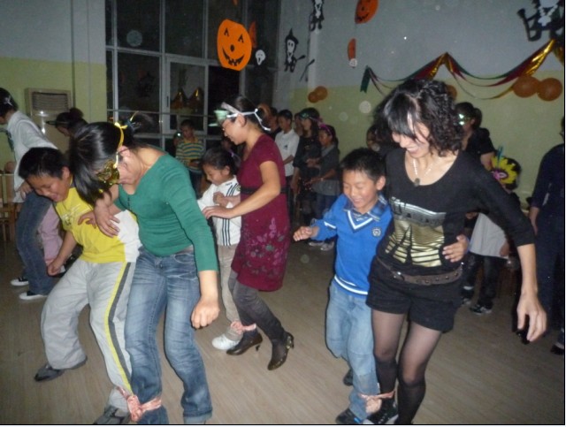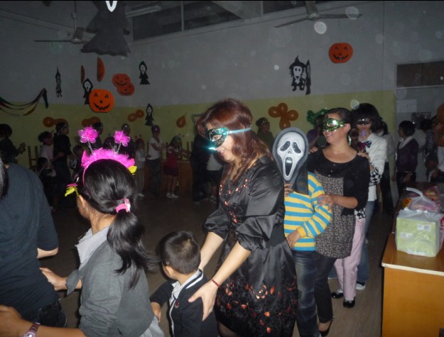 10月31日晚,一场以“大鬼”(家长)和“小鬼”(学生)为主角,充满着魔幻趣味的万圣节亲子欢乐派对在旭日作文上演。随着音乐响起,晚会在18:30正式开始。孩子们戴着面具,手拉手围在一起,跳起了“兔子舞”。嬉闹声感染了周围的家长,于是也纷纷加入到舞蹈的行列中,现场一时间“群魔乱舞”。接下来进行的滚南瓜、咬苹果、幽灵附体、思维大转弯等游戏,更是给参加的孩子及家长带来了无穷乐趣,欢笑声不绝于耳。