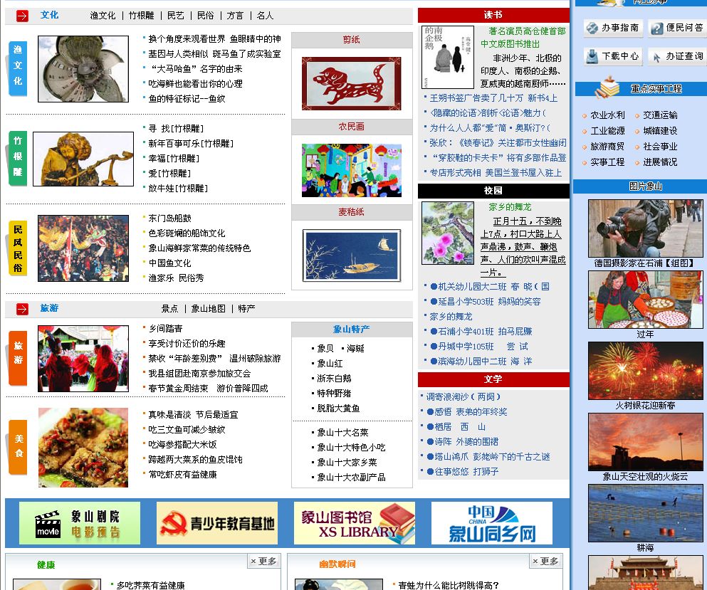 中国象山港网站新版规划更合理,内容更全面丰富,除了加强和突出新闻板块外,文化和旅游板块内容也有了整体提高,便民服务导航清晰,图片象山直观生动。
