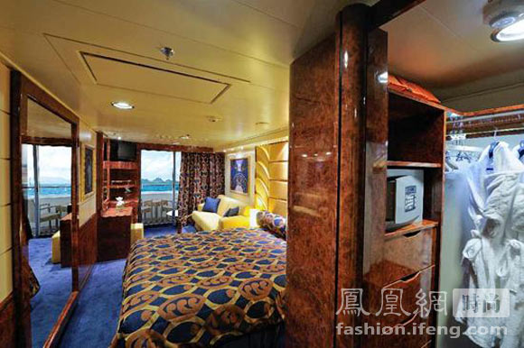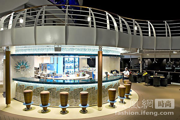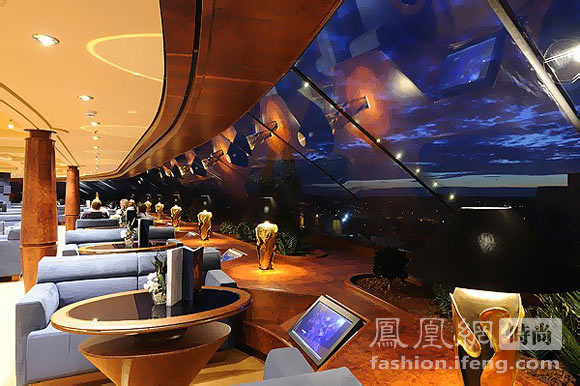 辉煌号”最雅致的部位就是位于轮船前部第15层甲板、上桅帆位置的休闲室了,它也是提供六星级服务的游艇俱乐部的组成部分。这里向外 伸展的“飘窗”能让游客获得全景别的视角。