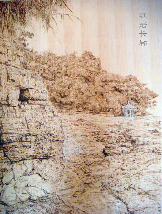 烙铁画对烙铁的温度、下笔的力度和速度、板材都非常有讲究。