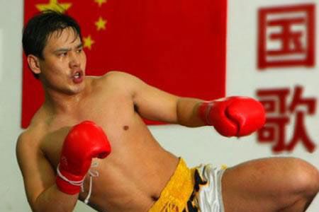 面对泰拳五王咄咄逼人的姿态,中国武术协会前天确定“2009中国功夫对职业泰拳”赛确定于下月19日在佛山岭南明珠体育馆举行。赛事以中国武术散打规则为基础,融合部分泰拳规则,允许交战双方运用膝肘技术进攻对手,每场赛事五个回合,每个回合三分钟。