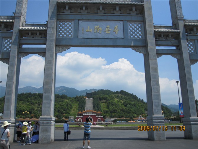 衡山由包括长沙岳麓山、衡阳回雁峰在内,巍然耸立着的72座山峰组成,亦被称作“青天七十二芙蓉”。南岳的首峰就在衡阳市中心的南门口——回雁峰,从“天下南岳第一峰”向北出发,沿蒸湘北路乘汽车行驶一个多小时,从眼前闪过几十座像芙蓉般婀娜多姿的山峰,就进入了南岳胜景。