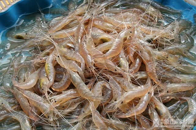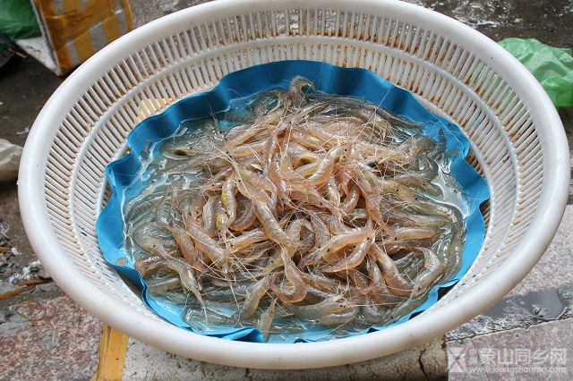 小白虾,晶莹剔透,味道鲜美,加葱姜开水煮熟,沾醋吃。