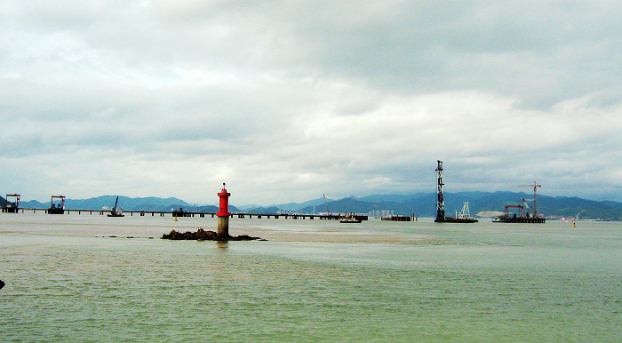时隔五年的2009年,象山港大桥终于动工兴建了。今年11月8日,我与文友一起去象山,看到了在建中象山港大桥的桥墩已屹立在滔滔港水中, 2009111818595356.jpg 这预示着象山港这条隔离着南北两岸的“天堑”,不久即将变为通途。到那时象山半岛与内陆大地连成了一片,从宁波到象山只要一个小时车程。这对象山的发展,相当于增加了一台高速发动机。那时,象山经济与社会的发展定会更加振翅腾飞;港两岸的村村落落,会像仙女裙带上的一颗颗明珠,显得更加光彩夺目、美丽动人!