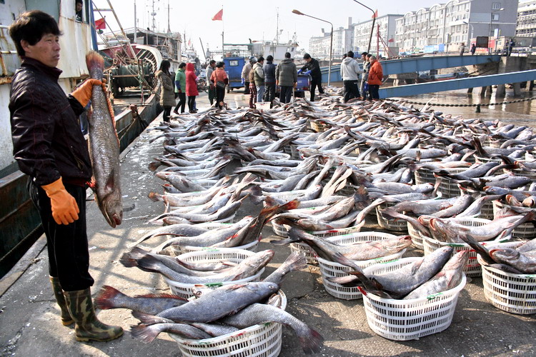 张瑞民老大称:每条鮸鱼都有20多斤重,一网就是50担。我捕鱼捕了三、四十年,捕获介多、介大的鮸鱼,还是第一次。渔船从渔场归来、刚靠埠石浦水产码头,就被温州客商以每公斤40元的高价买走。